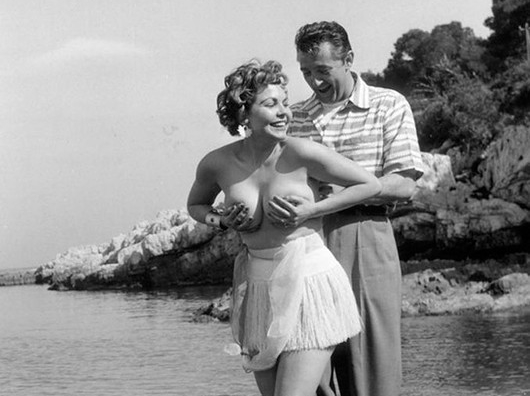 Ранее, в 1954 году, блюстителей морали из США крайне возмутило поведение актрисы Симоны Силвы, которая во время позирования перед журналистами сняла с себя топ, прикрыв руками грудь. Каннский кинофестиваль объявили рассадником безнравственности и призывали игнорировать смотр.